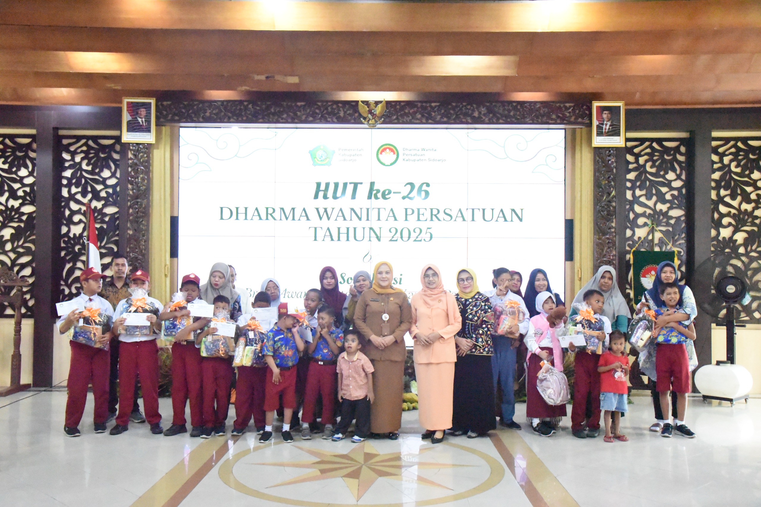 Sidoarjo – Dharma Wanita Persatuan (DWP) menapaki usia ke-26 pada tahun 2025. Dharma Wanita Persatuan Kabupaten Sidoarjo memperingati hari jadinya dengan menggelar kegiatan santunan bagi anak berkebutuhan khusus. Resepsi peringatan Hari Ulang Tahun (HUT) ke-26 tersebut dilaksanakan oleh DWP Kabupaten Sidoarjo di Pendopo Delta Wibawa, Selasa (9/12), sekaligus menjadi puncak rangkaian peringatan HUT ke-26 DWP di Kabupaten Sidoarjo tahun ini.
