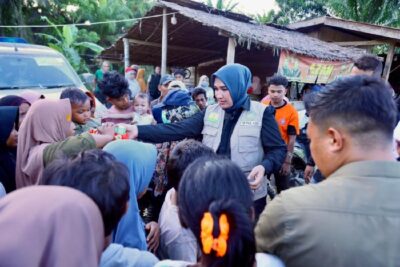 Aceh Timur – Ketua TP PKK Aceh Marlina Muzakir, bersama Staf Ahli TP PKK Aceh Mukarramah Fadhlullah, menembus pelosok untuk menyerahkan bantuan tanggap darurat ke Gampong Blang Seunong, Kecamatan Pantee Bidari, Jum’at (19/12/2025). Tak hanya mengantar bantuan, perempuan yang akrab disapa Kak Na itu juga membawa tim medis, untuk memeriksa kondisi kesehatan masyarakat di posko serta membagikan obat-obatan yang diperlukan warga.