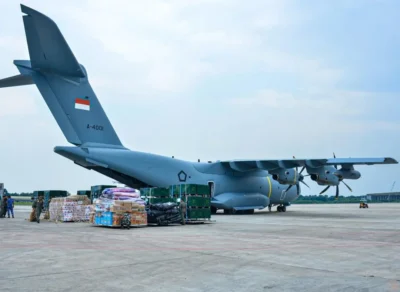 Jakarta – TNI Angkatan Udara (TNI AU) telah mengirimkan 900 ton bantuan kemanusiaan untuk masyarakat terdampak banjir di Aceh, Sumatera Utara, dan Sumatera Barat hingga Minggu (4/1/2026). Bantuan ini dikirimkan secara bertahap sejak akhir November 2025 melalui berbagai alutsista udara, seperti A-400M, C-130J Super Hercules, CN-295, C-212, dan helikopter EC-725/H225M dan AS 332 Superpuma.