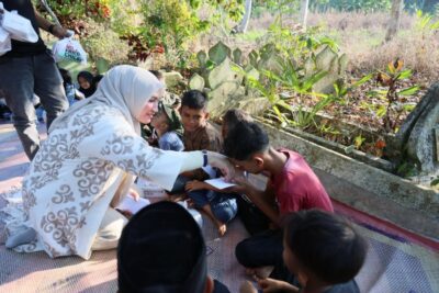 ACEH UTARA – Pulang Kampung atau mudik Hari Raya Idul Fitri 1447 Hijriah pada hari ketiga dimanfaatkan Ketua TP PKK Aceh Marlina Muzakir, untuk bersilaturrahmi dan menyantuni puluhan anak yatim dan kurang mampu serta Lansia, di Gampong Mane Kawan Kecamatan Seunuddon, Senin (23/3/2026) sore.