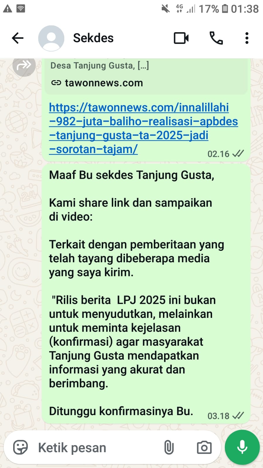 Harian Basis.com akan terus mengawal kasus ini hingga ada kejelasan terkait aliran Dana Desa Tanjung Gusta yang menjadi hak masyarakat.