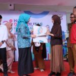 Banda Aceh – Ketua TP PKK Aceh Marlina Muzakir menerima batik tulis karya Munatunnzahra, anak Disabilitas rungu, pada peringatan Hari Disabilitas Internasional