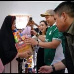 -Bupati Pakpak Bharat, Franc Bernhard Tumanggor bersama istri, Ny. Juniatry Franc Bernhard Tumanggor membagikan paket bantuan bencana alam bagi masyarakat desa Malum,