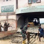Aceh Tamiang – Satuan Tugas Batalyon Zeni Tempur 10/JP/2 Kostrad Melaksanakan pembersihan sektor Pondok pesantren Darul Mukhlisin Kabupaten kabupaten Aceh Tamiang, Minggu