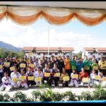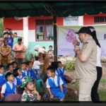Pakpak Bharat -Bupati Pakpak Bharat, Franc Bernhard Tumanggor bersama Bunda PAUD PAkpak Bharat, Ny. Juniatry Franc Bernhard Tumanggor membagikan paket makanan tambahan