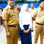 Pakpak Bharat – Bupati Pakpak Bharat, Franc Bernhard Tumanggor memimpin Upacara Hari Olah Raga Nasional ke-42 tingkat Kabupaten Pakpak Bharat di lapangan